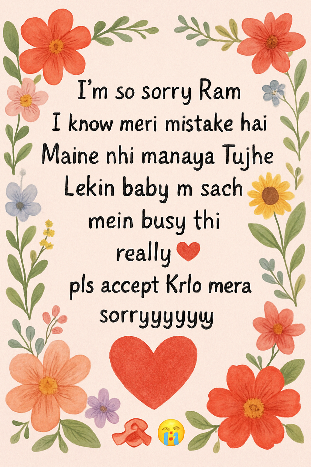 I’m so sorry Ram i know meri mistake hai Maine nhi manaya Tujhe Lekin baby m sach mein busy thi really💗🌻pls accept Krlo mera sorryyyyy ❤️🫂😩