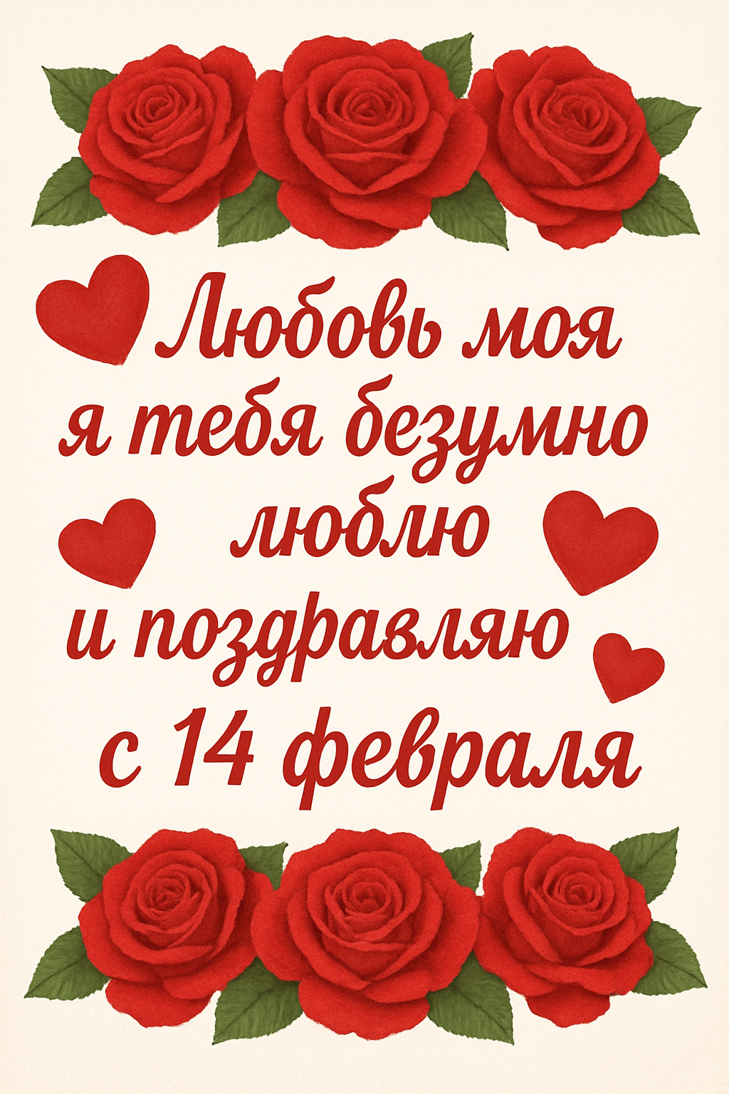 Любовь моя я тебя безумно люблю и поздравляю тебя с 14 февраля