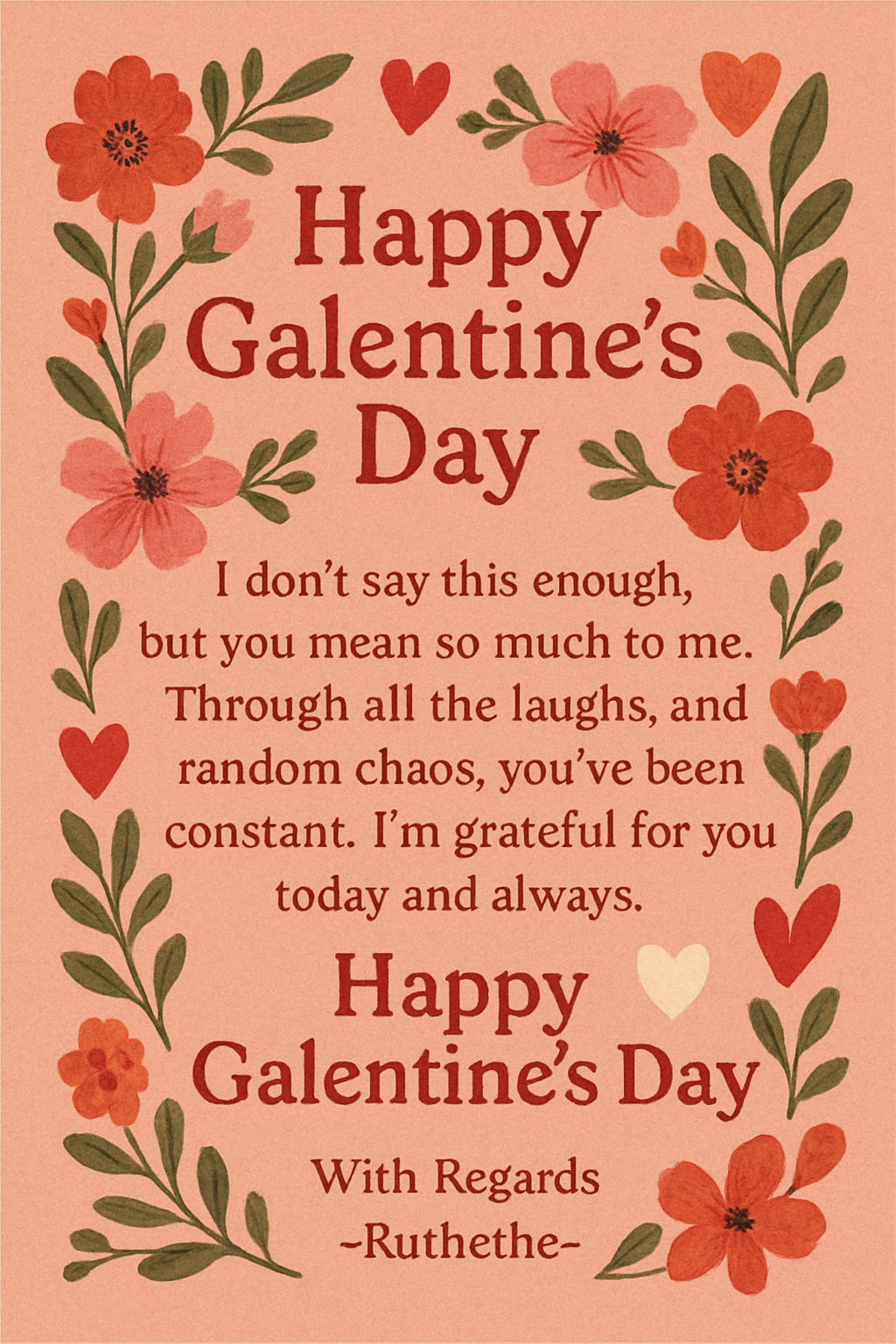 Theme: I don’t say this enough, but you mean so much to me. Through all the laughs, and random chaos, you’ve been constant. I’m grateful for you today and always. Happy Galentine’s Day 🤍 With Regards -Ruhethe-