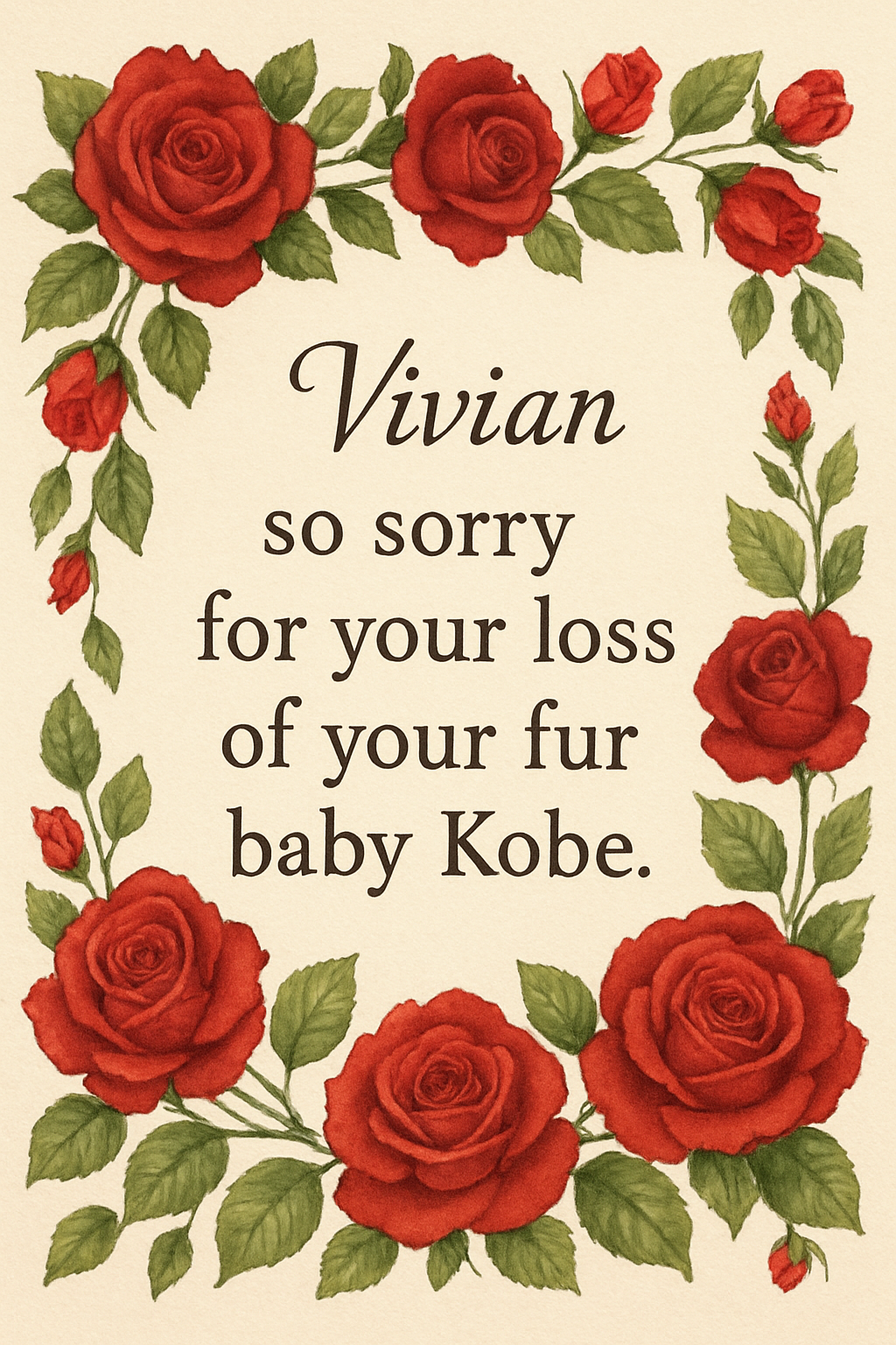 Vivian so sorry for your loss of your fur baby Kobe.