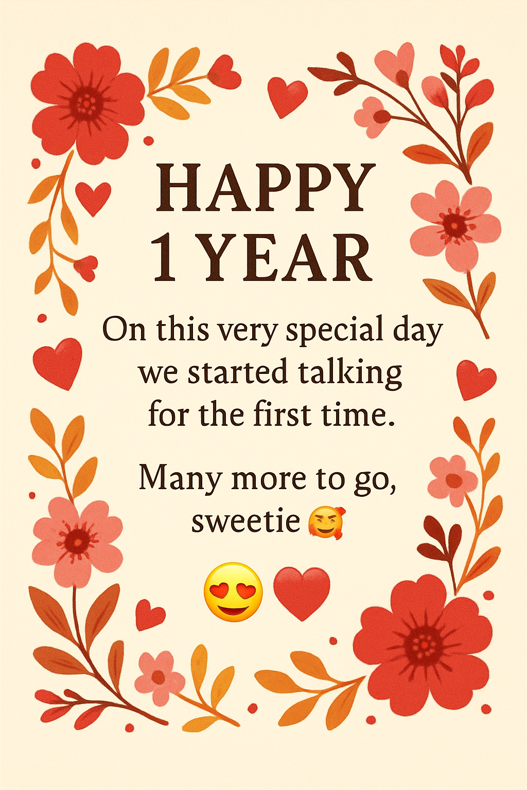Happy 1 year. On this very special day we started talking for the first time. Many more to go, sweetie 🥰❤️