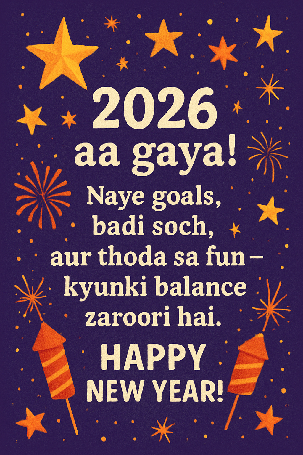 2026 aa gaya! Naye goals, badi soch, aur thoda sa fun—kyunki balance zaroori hai. Happy New Year!
