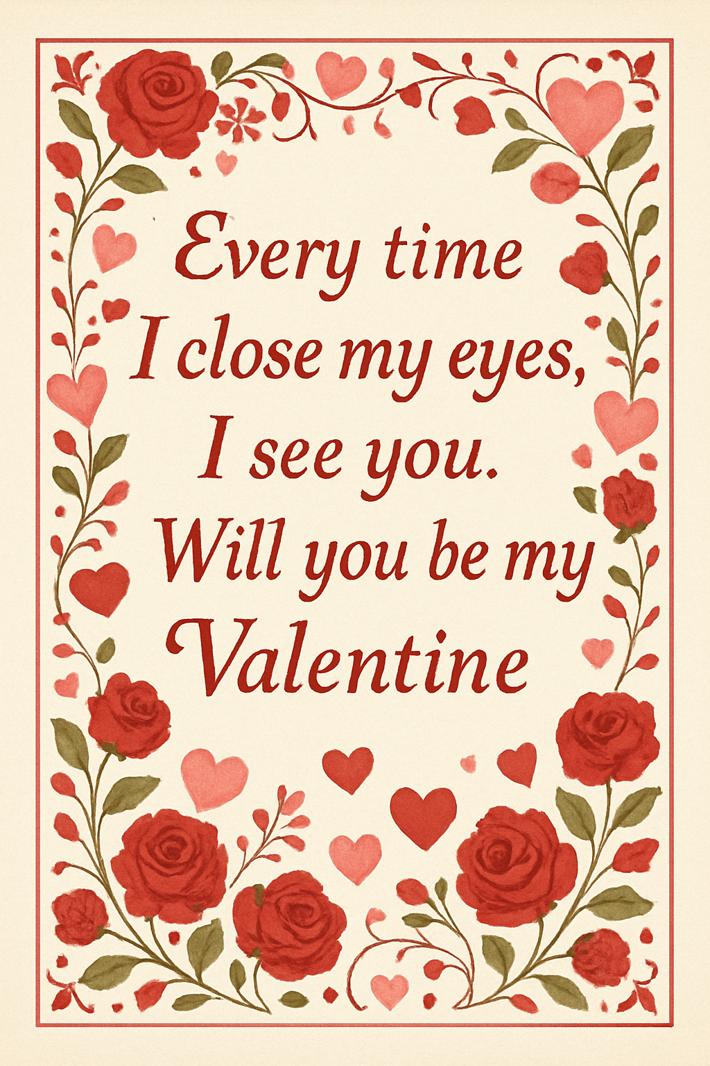 Every time I close my eyes, I see you. Will you be my Valentine