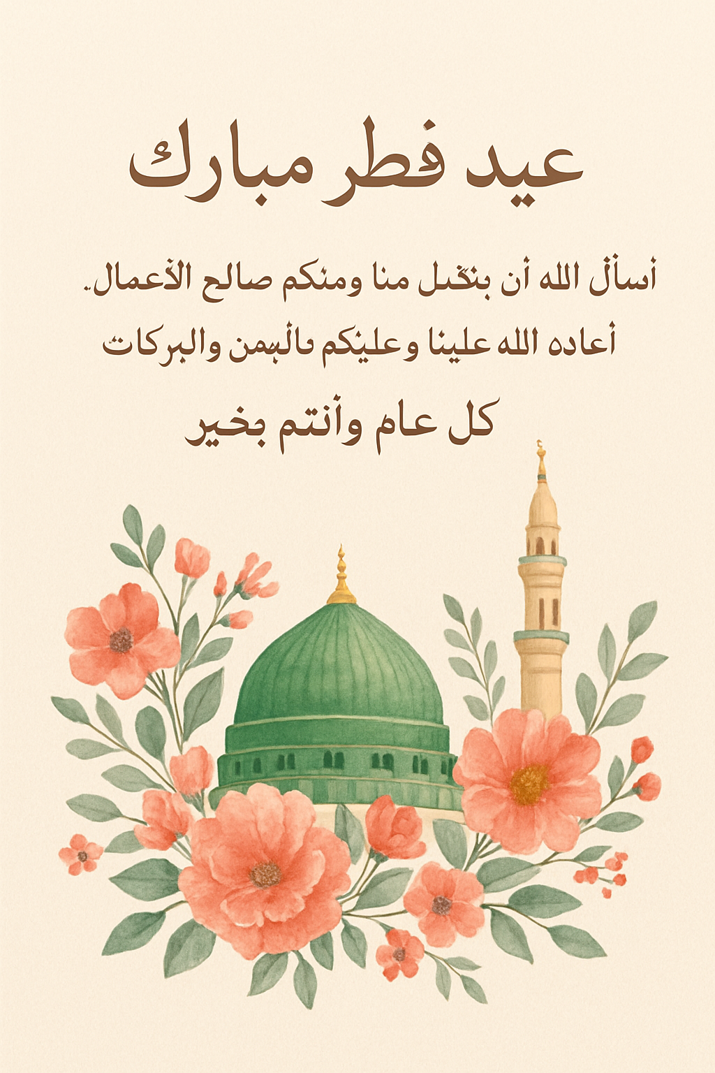 عيد فطر مبارك أسأل الله أن يتقبل منا ومنكم صالح الأعمال، أعاده الله علينا وعليكم باليمن والبركات. كل عام وأنتم بخير،